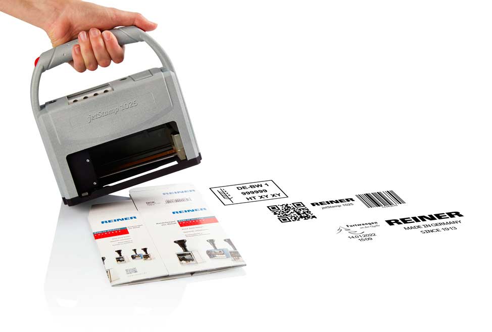 Der REINER jetStamp 1025 ist ein mobiler Inkjet-Stempeldrucker zur mobilen Kennzeichnung von Dokumenten, Verpackungen oder Produkten.